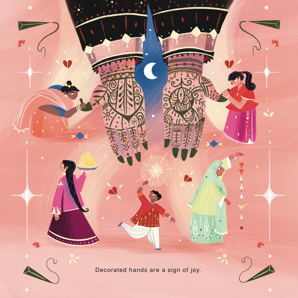 This book is about the art of henna and how families and friends gather around it in love and celebration.